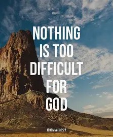 Whatever the difficulty you are going through, know that God hasn’t forgotten you, He hasn’t abandoned you, He still has great plans for your life and nothing, absolutely nothing is too hard for Him to turn around for your good and His glory.